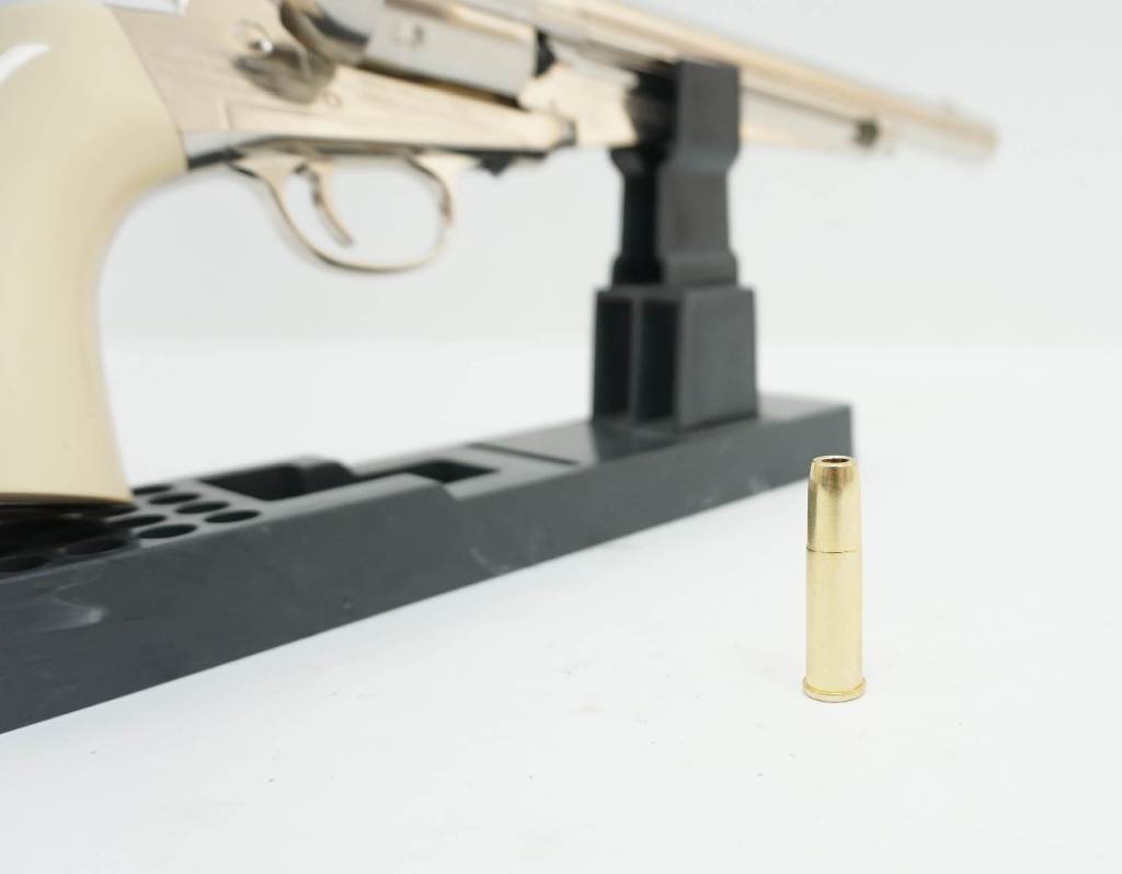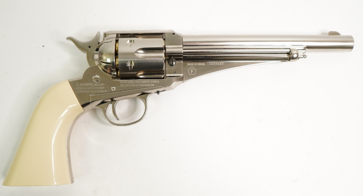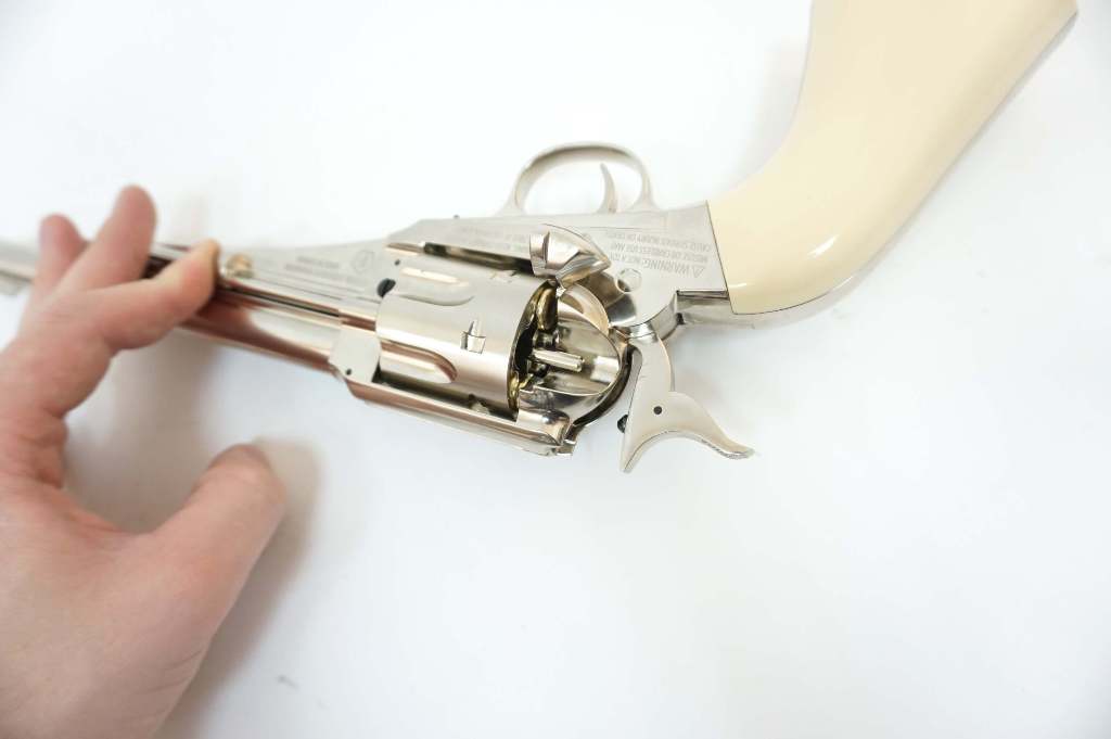 Пневматический револьвер оснащен функциональными патронами, загрузочным воротами и экстрактором, что создает функциональность, аналогичную фактическому огнестрельному оружию 1875 года.