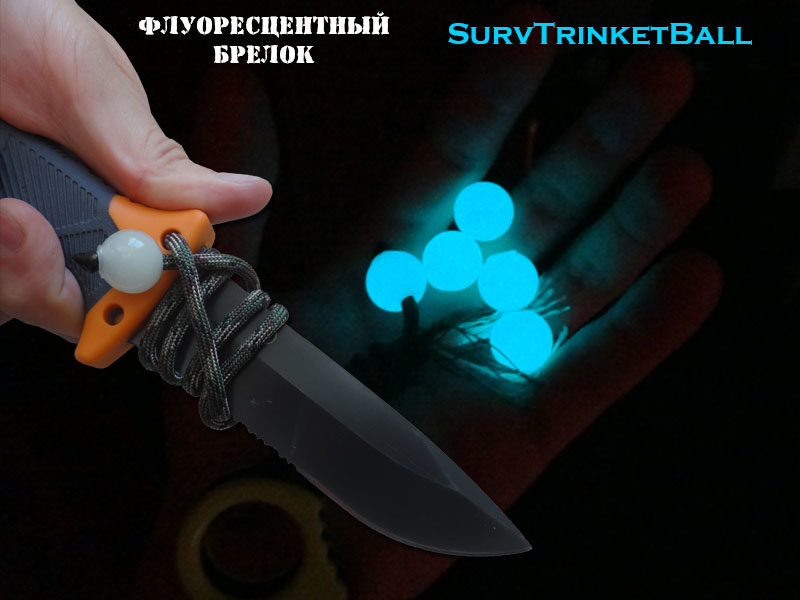 - Светящаяся бусина Surv Trinket Ball прекрасно подойдет всем любителям темляков и браслетов. Благодаря круглой форме их можно вешать на паракорд или веревку, одевать на шею в качестве светящегося ожерелья, привязывать к обуху ножа или топора, помечать застежку или пряжку у рюкзака, маркировать вход в палатку и многое другое.