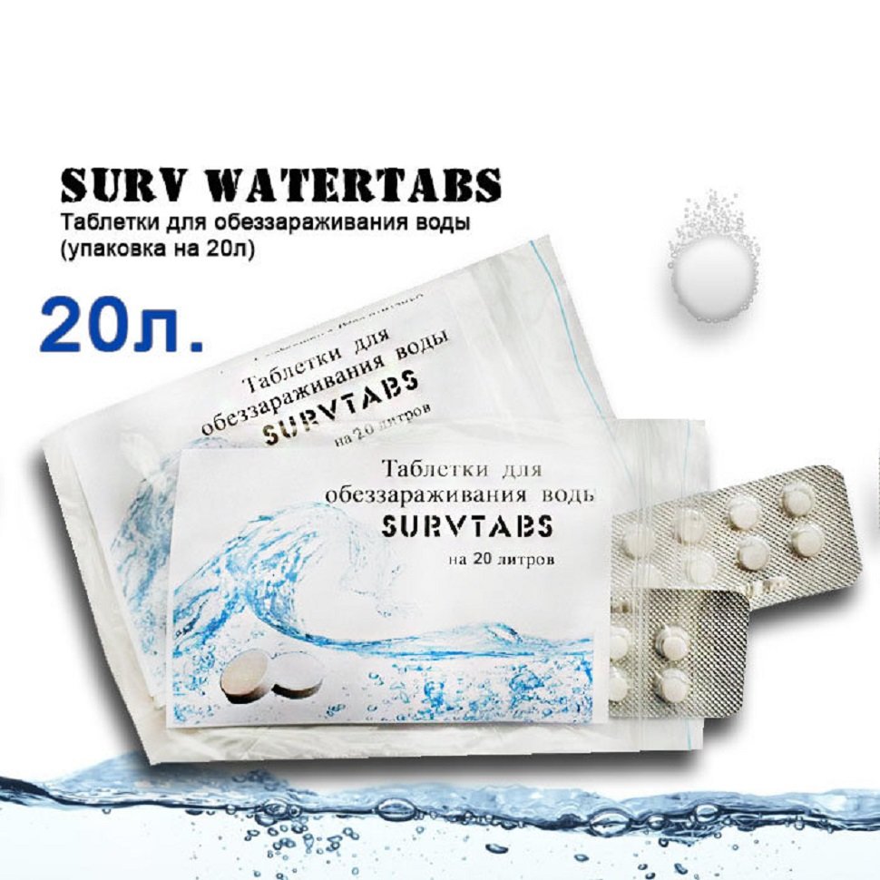Surv WaterTabs – это таблетки для обеззараживания воды. Они помогут дезинфицировать природную воду (например, из реки, озера или лужи) до состояния, безопасного для питья и приготовления пищи.