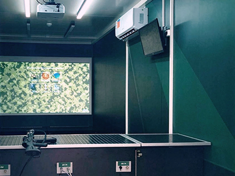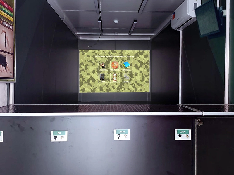 Позволяет проводить огневую подготовку при отсутствии стационарного учебного тира или полигона, в любой местности и при любых погодных условиях. Мобильный тир “Патриот” оснащен всем необходимым оборудованием для проведения практических занятий. Он уже включает в себя массогабаритные макеты оружия, экраны, стойку и кондиционер для работы в комфортных условиях.