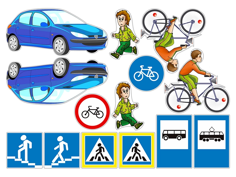 В комплект поставки входит набор цветных маркеров для нанесения записей на доску и комплект тематических магнитов "Азбука юного пешехода" в виде транспортных средств, пешеходов, велосипедистов и дорожных знаков для моделирования различных дорожных ситуаций.