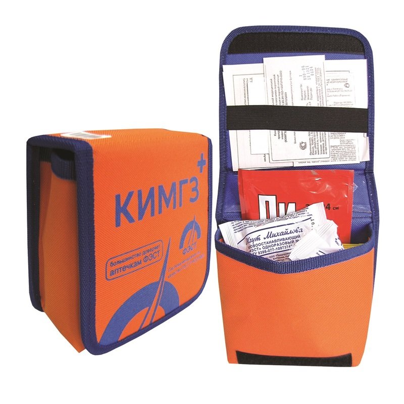 Комплект медицинский гражданской защиты КИМГЗ укомплектован в соответствии с приказом Министерства здравоохранения РФ от 15 февраля 2013г. № 70н Об утверждении требований к комплектации медицинскими препаратами и медицинскими изделиями КИМГЗ для оказания первичной медико-санитарной помощи и первой помощи "и приказом Министерства РФ по делам гражданской обороны, чрезвычайным ситуациям и ликвидации последствий стихийных бедствий от 23.01.2014 г. № 23 «О внесении изменений в приказ МЧС России от 01.11.2006 № 633 и признании утратившим силу приказа МЧС России от 25.05.2007 № 289. Размер футляра: 155x185x70 мм. КИМГЗ, которым обеспечивается личный состав формирований.