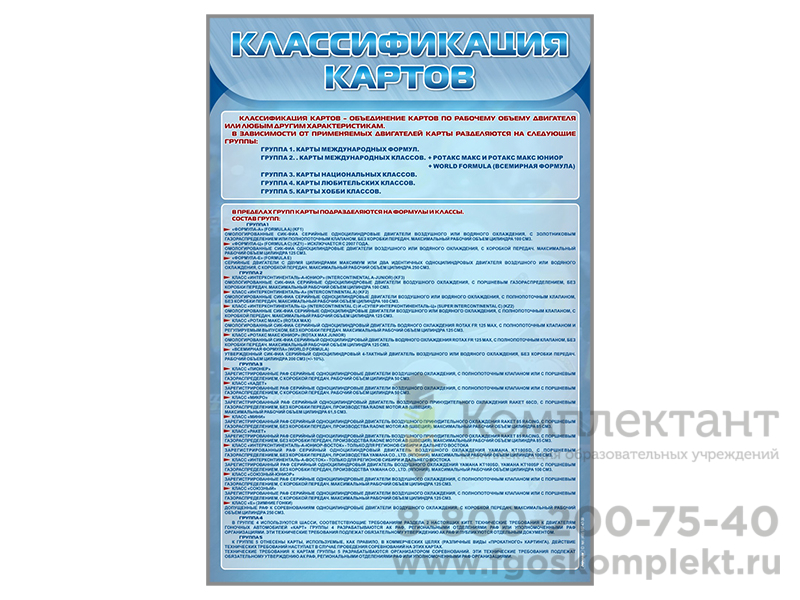 Стенд предназначен для ознакомления обучающихся с группами, формулами и классами картов, а также для формирования осознанного отношения к занятиям картингом.