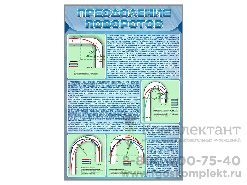 Стенды предназначены для ознакомления обучающихся со схемами одиночных и двойных поворотов на трассе, правилами их преодоления, а также для формирования осознанного отношения к занятиям картингом.
