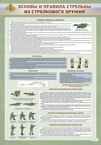 Стенд с информацией об основах и правилах стрельбы из стрелкового оружия. Предназначен для размещения в кабинете ОБЗР и военной подготовки в образовательном учреждении.