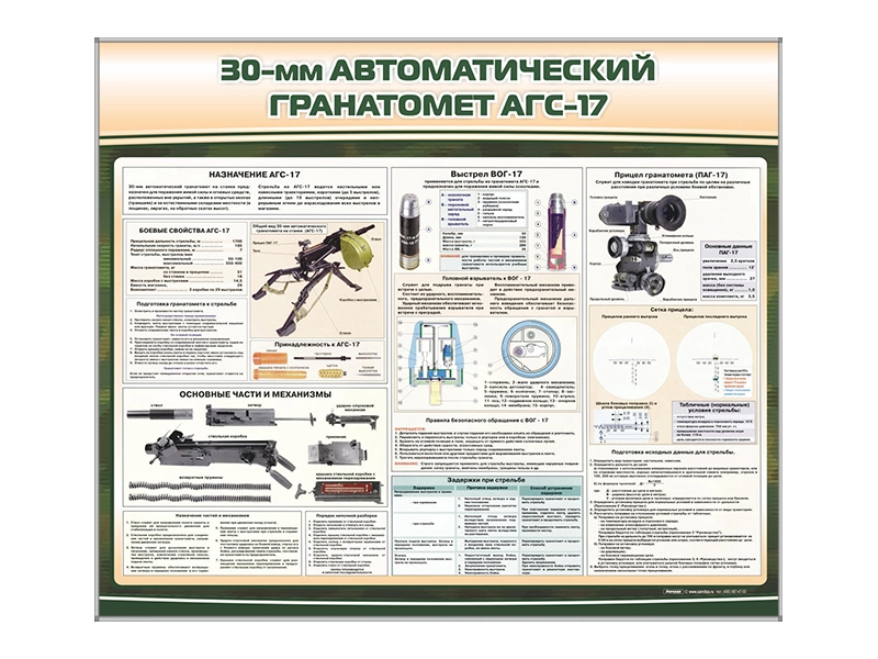 Стенд представляет собой комплект полноцветных панелей, на которых размещена информация по автоматическому гранатомёту АГС-17, содержащая сведения: