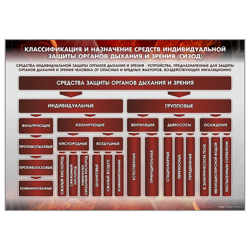 Стенд "Классификация и назначение средств индивидуальной защиты органов дыхания и зрения (СИЗОД)"