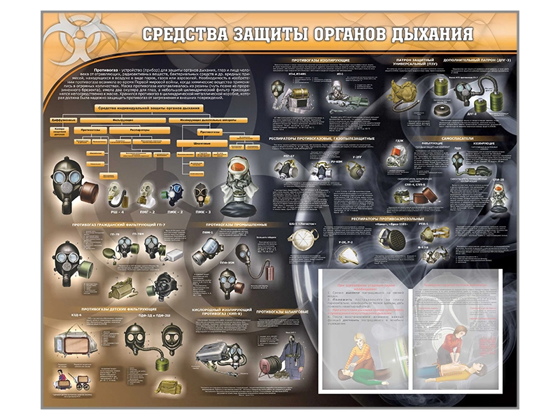 Стенд "Средства защиты органов дыхания (индивидуальные средства защиты)"