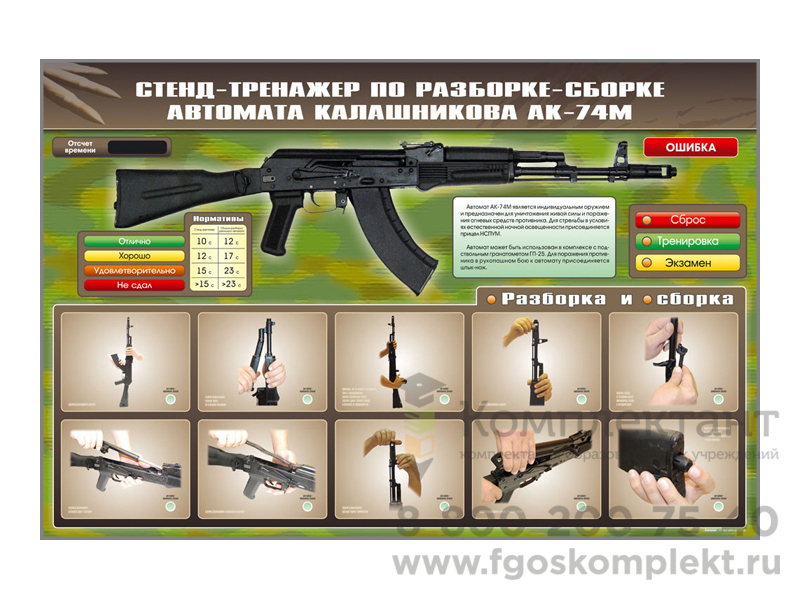 Стенд-тренажер предназначен для отработки у учащихся или курсантов навыков сборки-разборки АК-74М.
