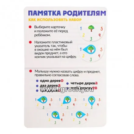 С помощью набора ребенок научится правильно согласовывать существительные и числительные, потренируется связно говорить, а также расширить словарный запас.