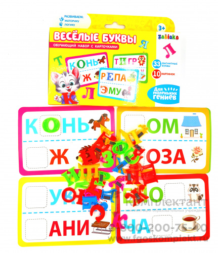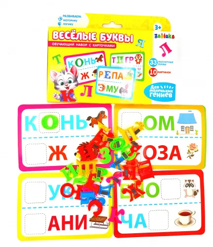Обучающий набор «Весёлые буквы» подходит для малышей от 3 лет. Он содержит магнитные буквы и карточки, которые превратят процесс обучения в увлекательную игру. Малыш научится читать по слогам и узнает, как пишутся окружающие его предметы. Картинка в конце слова является подсказкой.