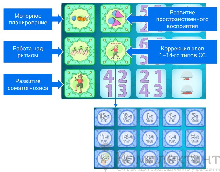 Программно-методический комплекс обеспечивает возможность проводить интерактивные занятия как в групповой игровой форме, так и в формате индивидуального взаимодействия.