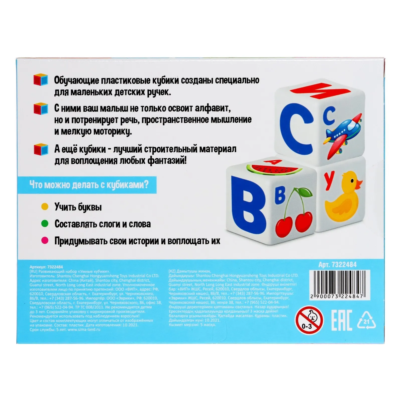 «Умные кубики», алфавит. Развивающий набор