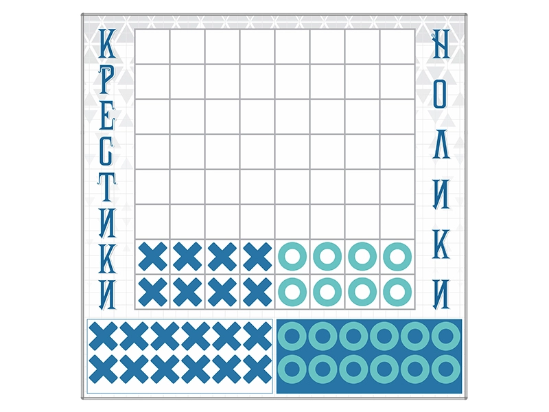 Предназначено для тренировки стратегического мышления в форме игры "крестики-нолики". Представляет собой магнитно-маркерное панно с размеченным полем для игры и расположенными внизу полями для размещения свободных магнитных элементов, а также магнитные элементы - крестики и нолики.