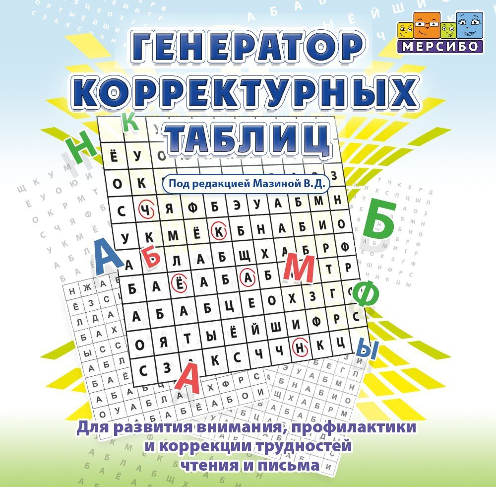 "Генератор корректурных таблиц" - программа, которая поможет быстро создавать корректурные таблицы любой сложности для решения широкого круга задач. Они помогут закрепить образ букв, умение не смешивать оптически схожие буквы, запомнить написание устойчивых сочетаний, составлять филворды и решать другие обучающие, развивающие и коррекционные задачи.