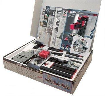 Конструктор профессиональных станков в миниатюре UNIMAT 1 CLASSIC позволяет создать настольную столярную мастерскую: используя его детали и модули, можно работать по металлу на токарном станке, горизонтально-фрезерном станке, настольных сверлильных и фрезерных станках.