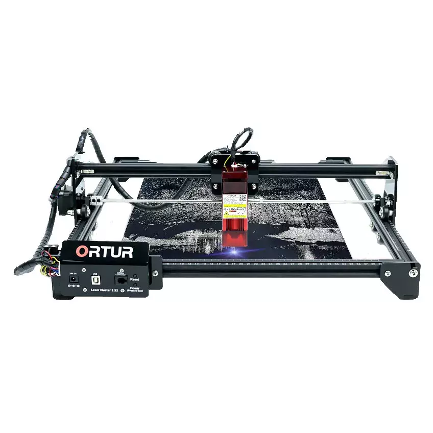 Особенности лазерного станка Ortur Laser Master2 S2-LU2-4-LF: Невероятно высокая четкость гравировки: Безопасное использование станка: Модернизированная 32-битная материнская плата со скоростью передачи данных до 921600 бод обеспечивает более плавную, стабильную и быструю работу. Модульная конструкция станка проста в сборке, замене, обслуживании и модернизации. Пользователь может собрать устройство за 10-20 минут К осям X и Y добавлены шкалы для быстрого измерения выгравированных объектов Концевые выключатели в четырех направлениях позволяют точно определить рабочие координаты лазерной головки. Диапазон мощности лазера может составлять S0 - S1000, по сравнению с 8-битными настольными лазерными граверами, которые имеют только S0 - S255. Ortur Laser Master может более точно управлять лазерным лучом и способен даже "нарисовать" картинку на бумаге. Скорость гравировки может достигать 5000 мм/мин. Поддерживает режим ШИМ. Большая область гравировки 390 x 410 мм. Гравирует: дерево, картон, черный акрил, кожа, пластик (непрозрачный), металл с порошковым покрытием (выжигает только покрытие, краску или анодирование) и т.д. Режет: картон, сосновая доска, войлочная ткань, кожа, тонкая фанера, тонкий черный акрил и т.д.