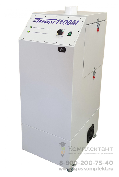 Вытяжная установка (дымоуловитель) «Тайфун – 1100М» является модернизированной версией вытяжной системы «Тайфун - 1100». В отличие от предшественника, на этой модели установлен дополнительный кассетный фильтр G4 и увеличена площадь мешочного фильтра грубой очистки, тем самым обеспечивается четырехуровневая система фильтрации и увеличен срок службы фильтров.