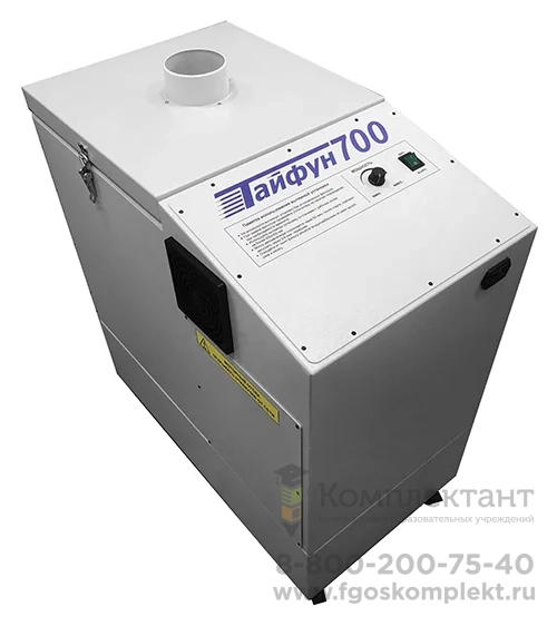 Вытяжная установка "Тайфун-700" - это бюджетная модель вытяжки, специально спроектированная для пользователей имеющих небольшие настольные станки и работающих не более 5 часов в день. В отличии от модели "Тайфун-1100", вытяжка имеет коллекторный мотор, который не может непрерывно работать длительное время. Рекомендуемый режим работы: 60 минут работы и 3 минуты перерыв.