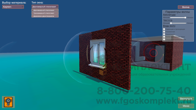 Визуальное отображение волны, проходящей через ограждающую конструкцию
