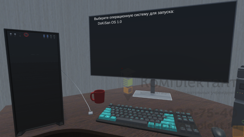 - Имитация работы с операционной системой, принтером, системным блоком и полноценной замкнутой средой, представляющей собой рабочее место пользователя, состоящее из ранее перечисленных элементов.